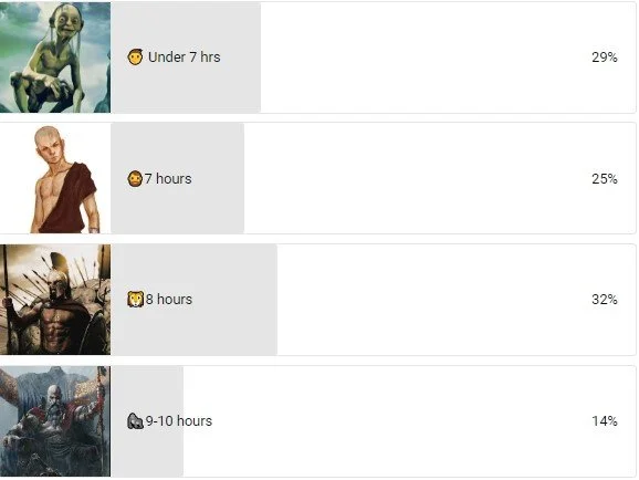 In a recent poll conducted on a YouTube channel, the results showed that a vast majority of participants barely get the MINIMUM amount of sleep needed to optimize testosterone levels and androgen status.
